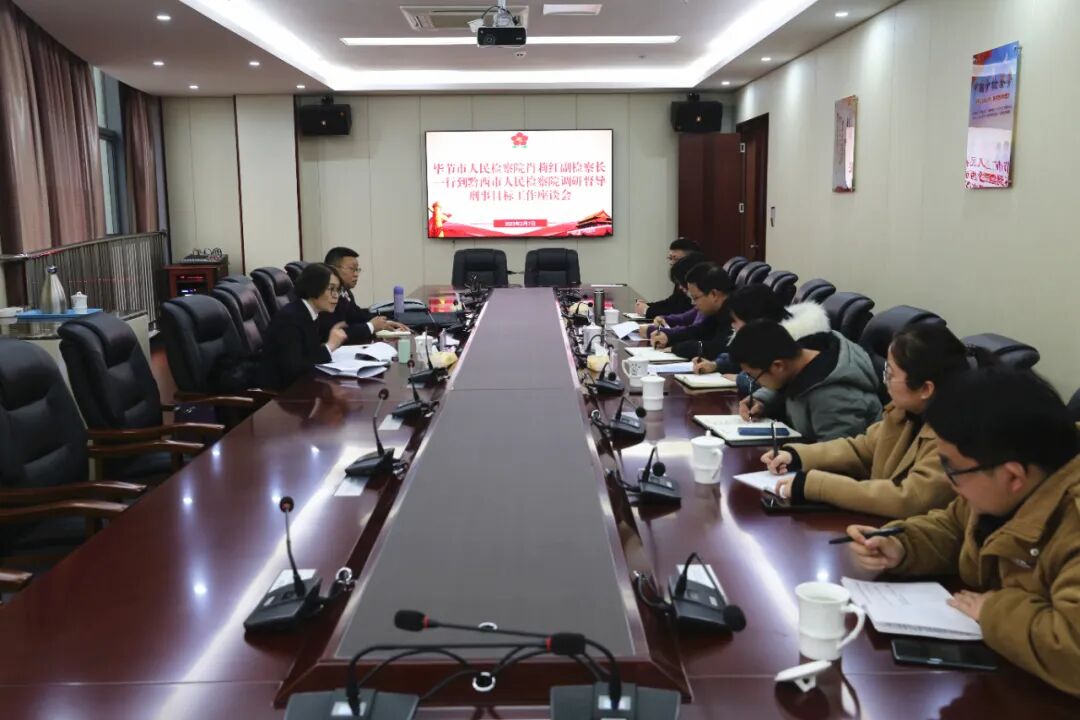 2月7日,毕节市人民检察院党组成员、副检察长肖莉红一行到黔西市人民检察院督导刑事检察业务目标工作,该院党组成员郑晓楼及第一、二检察部部门正副职、负责目标工作的同志参会。